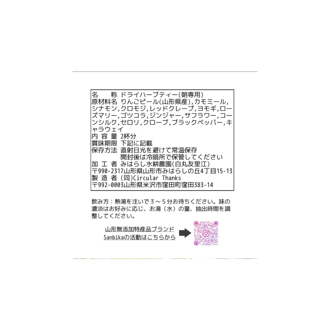 Sanbikaのアップルハーブティーは、山形県産の新鮮なりんごの皮を使用し、自然の恵みをぎゅっと凝縮しております。心身を健やかに整え、穏やかな時間をお楽しみください。